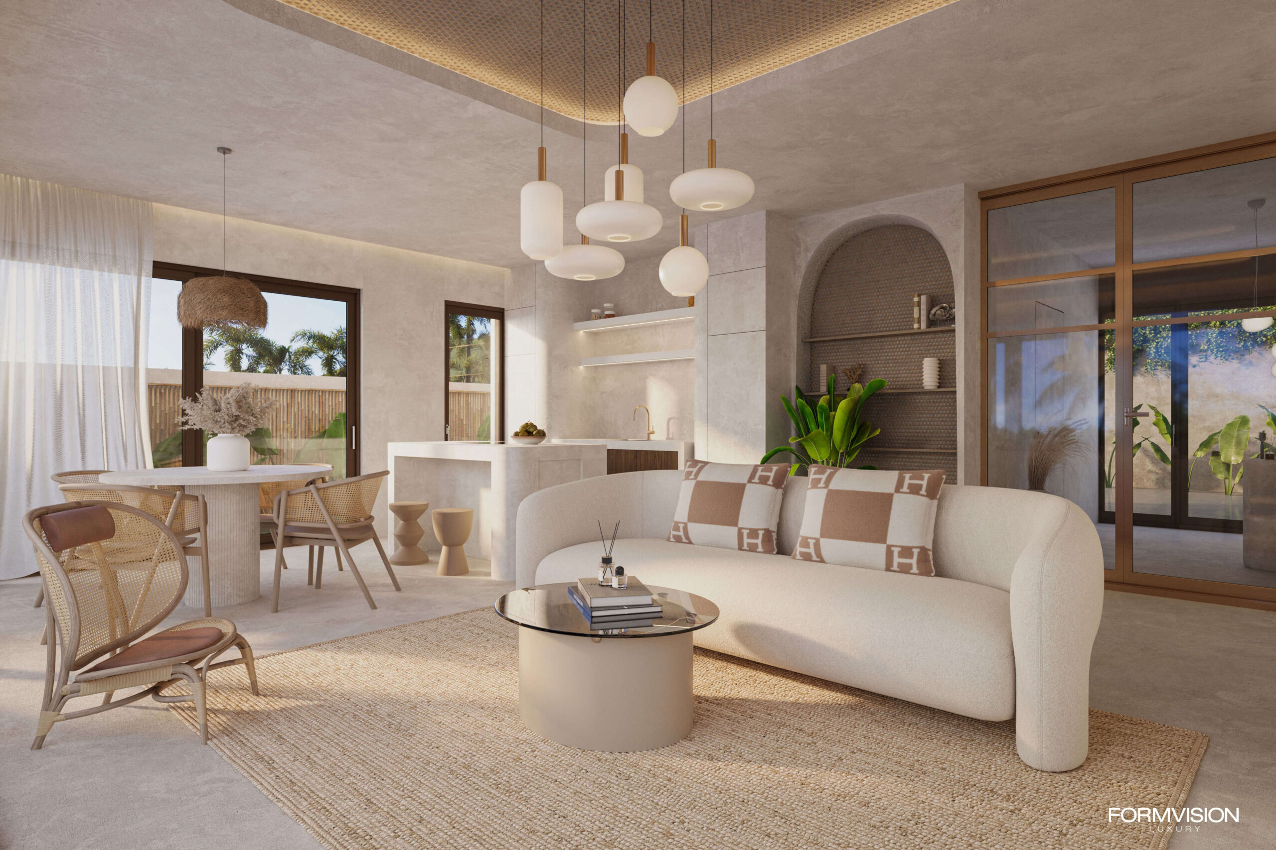 This elegant one-bedroom villa offers a private sanctuary designed for comfort and relaxation. The villa features a spacious bedroom with an en-suite bathroom, while the open-plan living room, dining area, and kitchen create a seamless and welcoming interior flow.